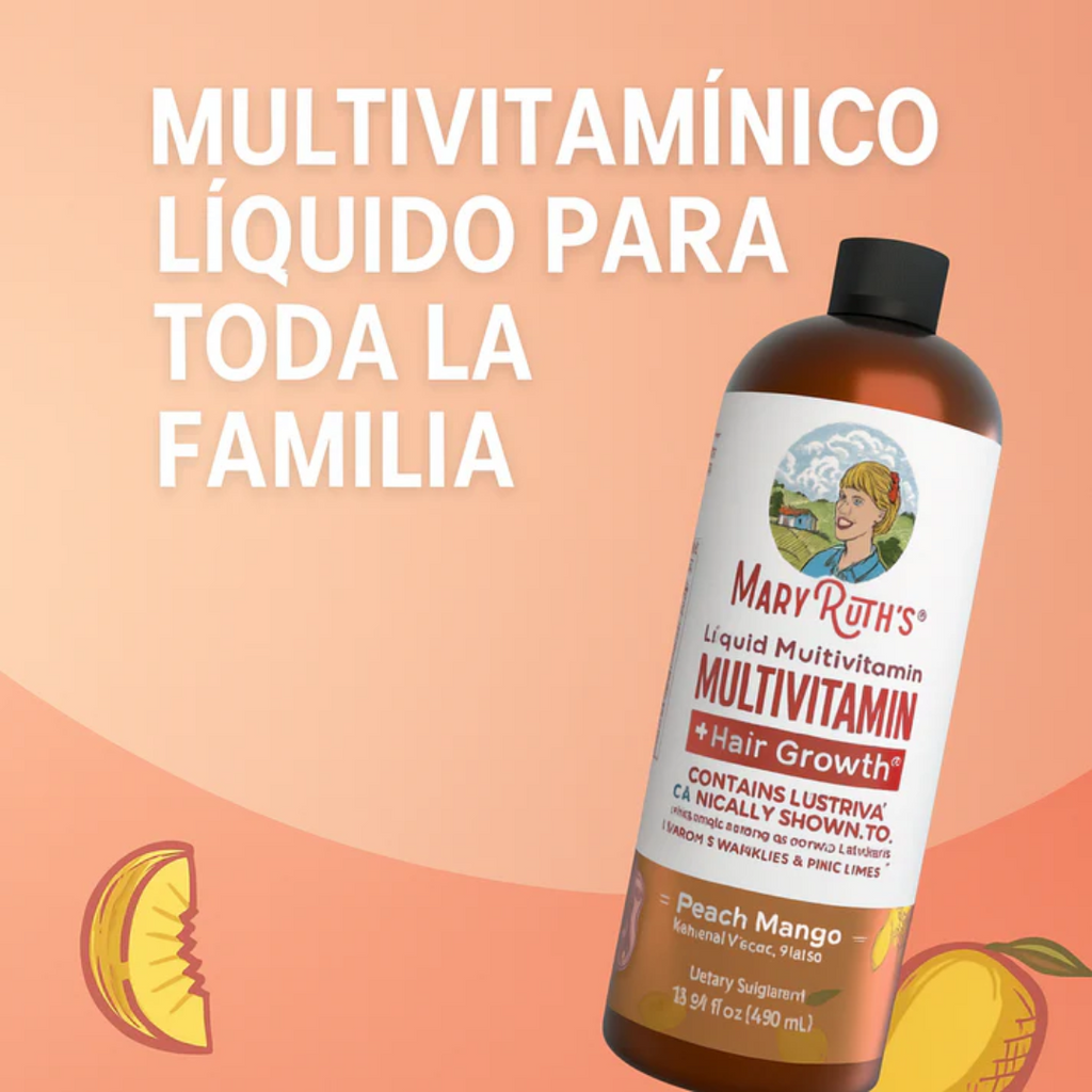 MaryRuth's, Suplemento multivitamínico para favorecer el crecimiento del cabello, Melocotón y mango, 450 ml